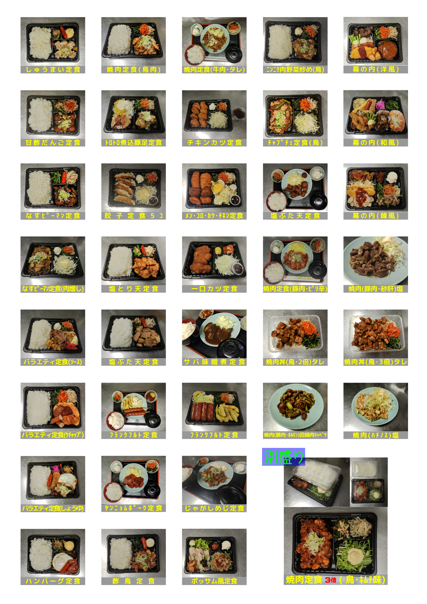 ※すべてお持ち帰りできます。定食のお持ち帰りにはスープが付きません。別売りになります。